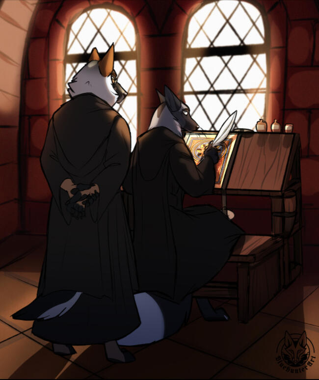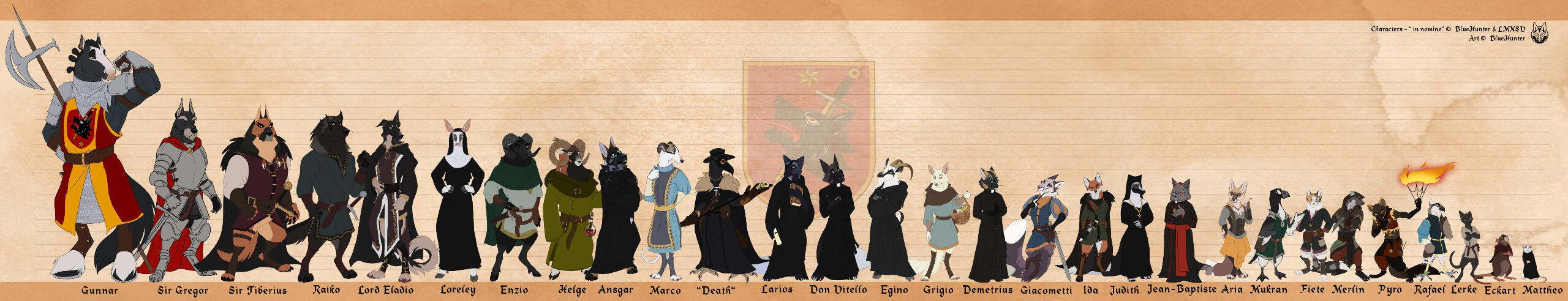 It must have been somewhen in summer 2018 when my partner discovered the power metal band Powerwolf for himself. At that time I was not familiar with their music and just had started listening to them when he introduced me to their music. I really liked their themes and melodies; you can say the music just clicked with me and made me pretty euphoric. I had been out of house when my partner wrote to me on Telegram and asked: “How about we work on a medieval headworld?” The idea excited me and we quickly filled our chat with possible character ideas …The headworld combines our love for anthropomorphic animal stories, but on a medieval fantasy stage. The tone of the project is for a mature audience and leaves plenty of room for darker scenes and stories, that hopefully stirrs up the reader as much as “Plague Dogs” or “Watership Down” by Richard Adams did to me. And as the series “Berserk” by Kentaro Miura has stuck with me for what feels like forever, it did its influence for the character creation, too, and set an atmosphere to work with. I like the challenge to combine real animal behaviour and blend it with a human mind, as it poses many challenges and problems to solve.Over time this universe became a place my mind likes to travel to and discover new stories, which aren't necessarily have to become canon.It’s motivating to read the comments and feedback from others who not only enjoy our characters, but our little stories as well. Some even briefly relate to one character or another and it’s making me speechless and proud in a way? Thank you so much!