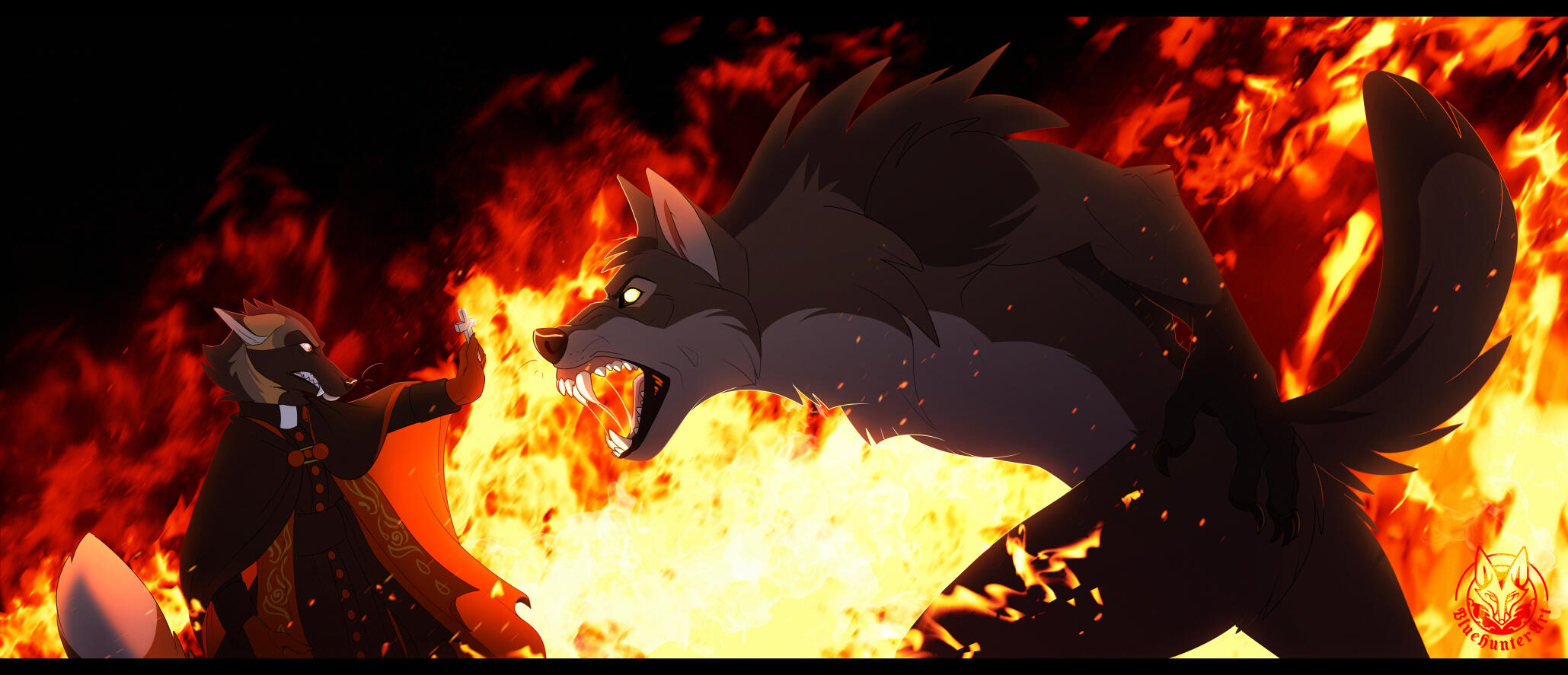 The evening mass must have ended. Demetrius approached the dog at a smart pace, just to slow down shortly in front of him. His face formed a painfully distorted, tooth baring grimace. Invisible to the eye of the many were his swiftly patched up gash wounds, now covered under the look of his new cassock. Ansgar, the parish’s former vicar, followed the cross fox closely. In his arms, Judith embarrassedly covered her face as she felt the masquerading play that was about to unfold.